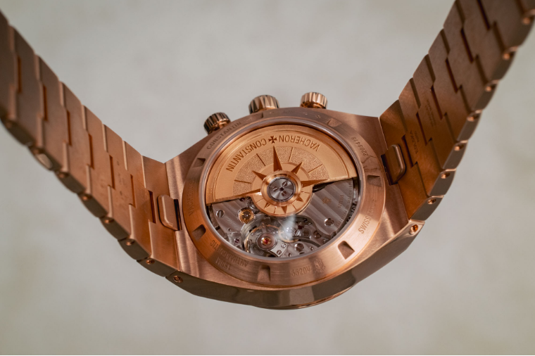 The watches all have the same recognizable Overseas case in 18k pink gold. There’s a gorgeous blend of crisp brushing and shiny polish to create plenty of light play, with the Maltese cross-themed bezel and its cutout embrasures adding depth to the case. Even the pushers and additional crowns on the Dual Time and the Chronograph are pink gold, and the entire package is visually warm but, as you might expect, decidedly hefty on the wrist. There’s just no way to lighten a solid-gold watch on a solid-gold bracelet. Even so, the watches wear incredibly well, thanks largely to the sharply angled lugs and the seamless transition between the case and the integrated bracelets; even those on the team who rarely venture beyond 40mm found themselves enjoying the 42.5mm case of the chrono. The bracelets, with their VC cross-links, feature a one-button quick-release and a clasp that can expand 2 or 4mm as needed. My only quibble is with the use of pavé diamonds on the Self-winding 35mm, which gives the watch a daintier,fake watches more delicate feeling. That may be intentional, but I’m always in favor of baguette diamonds when possible, as was done on the Overseas Tourbillon High Jewellery.