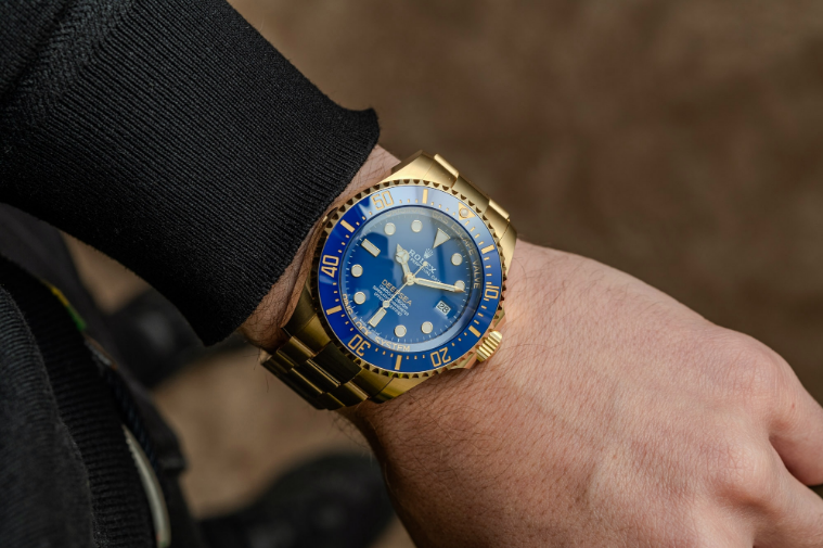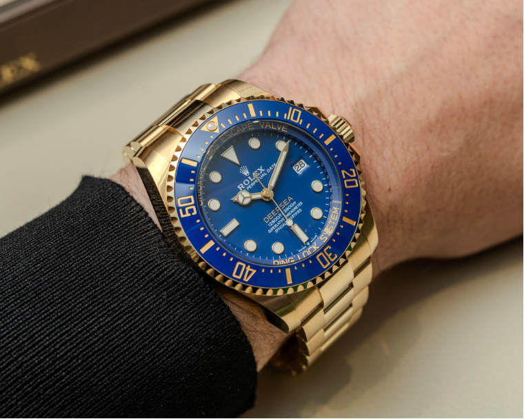 As mentioned in our coverage of this release, the notion of a 322g, solid 18k Deepsea on a solid 18k gold bracelet is contradictory to much of what we’ve seen from replica rolex in the past. Releases were always understandable, even if they were insane with rainbow gems or ornate onyx and diamond dials. There was sensible taste even in the most ostentatious Rolex replica watches. But what sensibility or taste is there to a 44m-wide, 17.7mm-thick gold watch? Wearing this is like tying a shiny cinderblock to your wrist. It is comfortable in a way perhaps only Rolex could make it, but also in a way akin to lining that same cinderblock with padded velvet. And the bright blue ceramic Cerachrom bezel shines almost as much as the gold case. Put the gold and blue together with the weight and all you can think of or pay attention to when this is on is the watch itself — not what time it is or whose yacht you’re definitely not diving from.